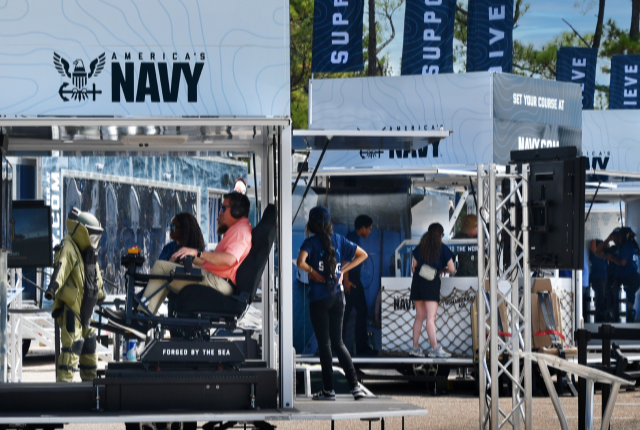 Do you have what it takes? Sail aboard an aircraft carrier in virtual reality. The Strike Group, a cutting-edge, multi-scenario, mobile mixed-reality experience, provides users with a hands-on look into the technology and teamwork that are central to every role in the Navy. Whether that's experiencing firsthand what it takes to launch an F35-C jet, fly a full-motion flight simulator, or take on the role of a Navy diver and drive a boat to a location after a storm and help repair a damaged pier, you will find the right path for you.