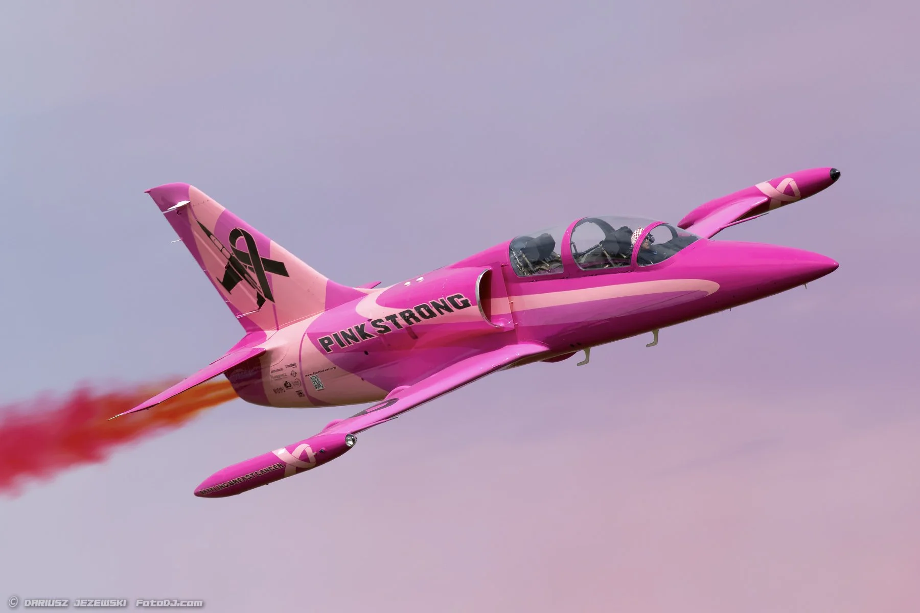 The Pink Jet is a non-profit organization dedicated to spreading breast cancer awareness, supporting survivors, and raising money to help find a cure for the disease. The Pink Jet promotes awareness and raises funds directly for breast cancer organizations by flying at air shows. This L-39 Albatros fighter jet, piloted by extraordinarily talented women, symbolizes strength, hope, compassion, and resilience.